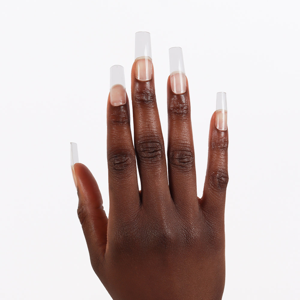 Trage jeden Tip mit einer dünnen Schicht Glitterbels HEMA Free Basecoat auf, um eine langanhaltende Haftung zu erzielen. Härte anschließend unter einer UV-Lampe aus, für nahtlose, schnelle Verlängerungen, jedes Mal.